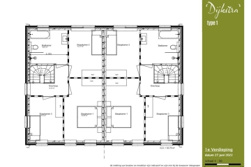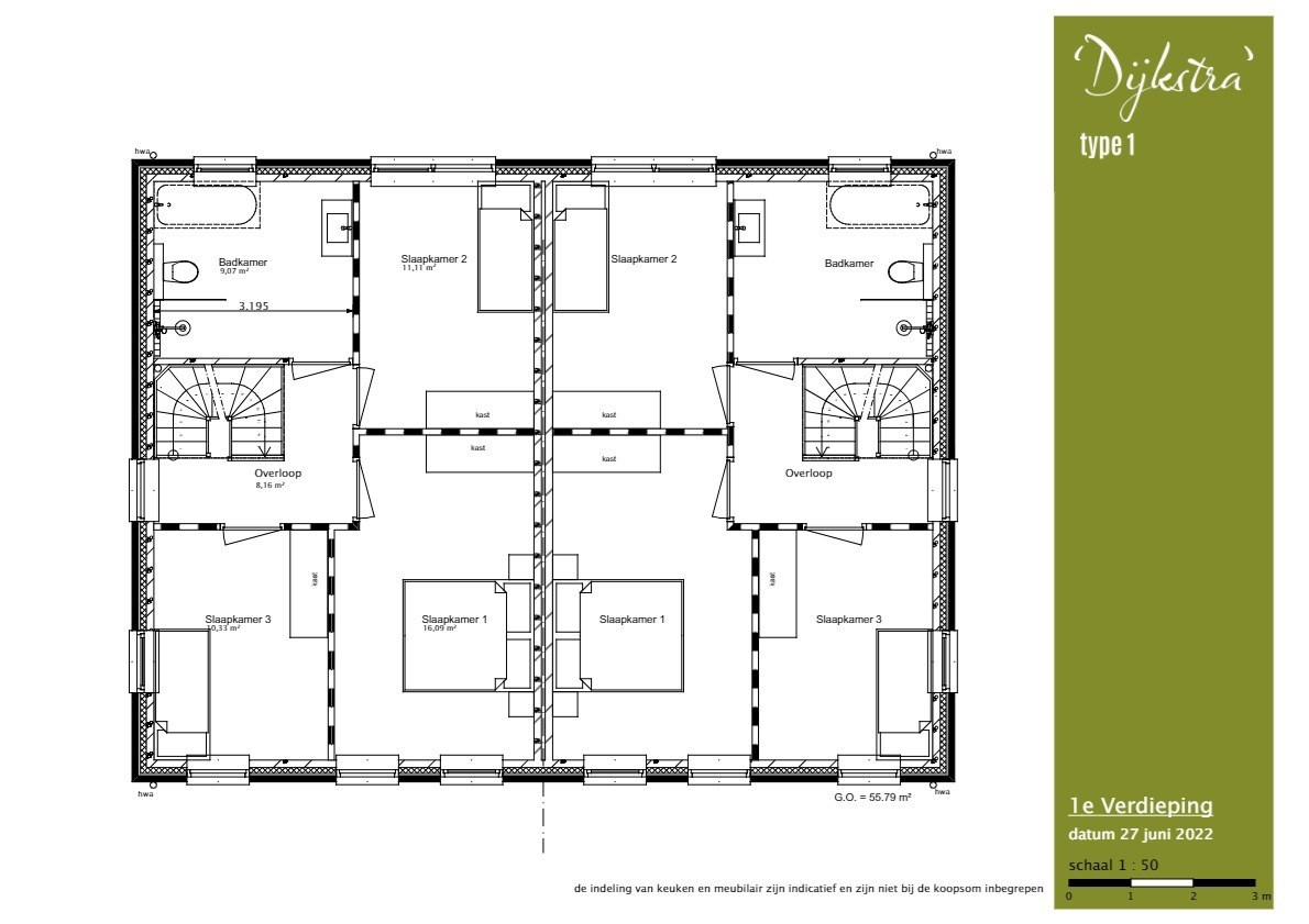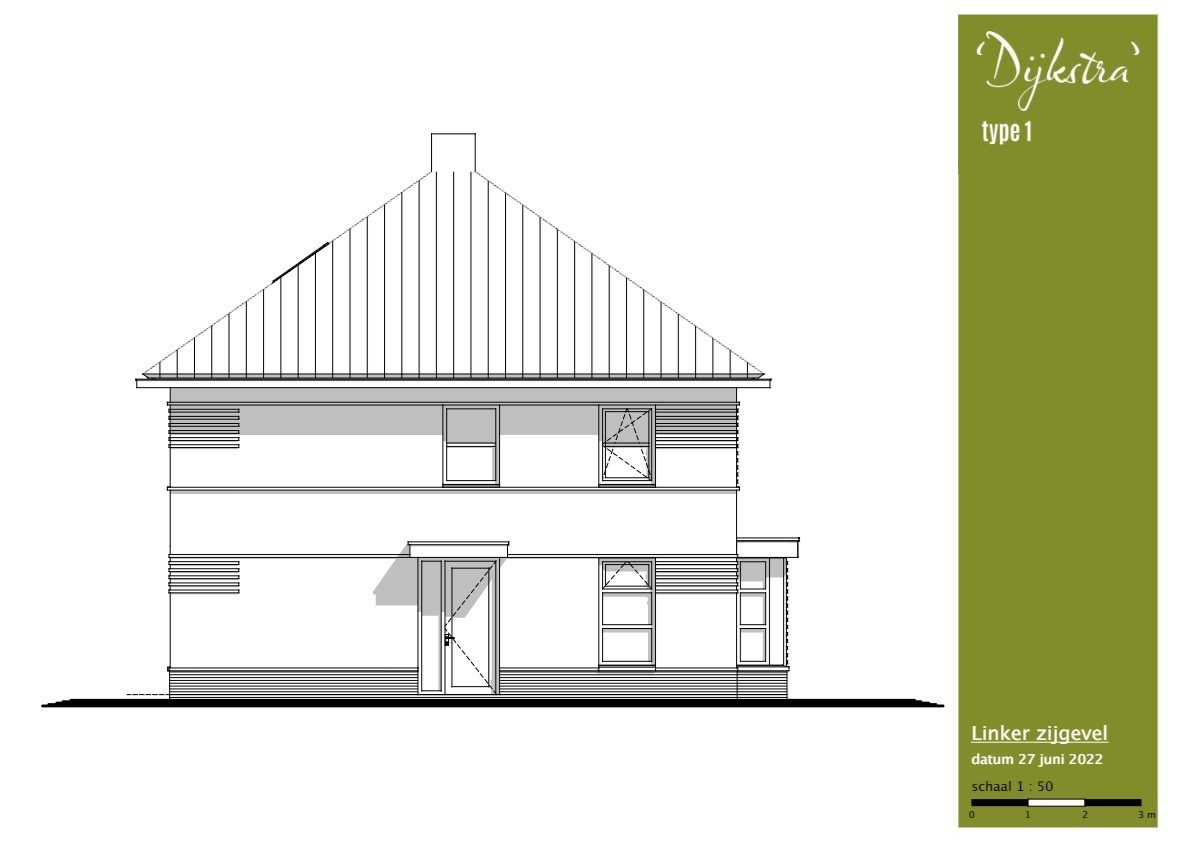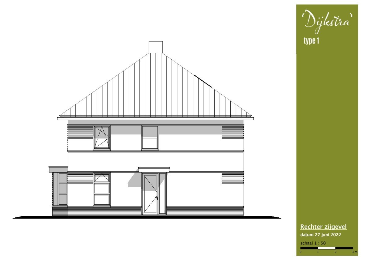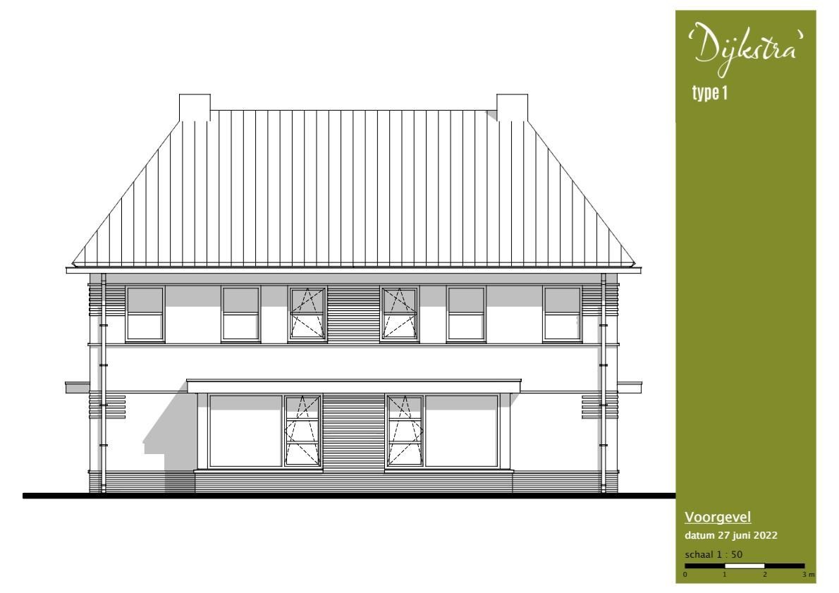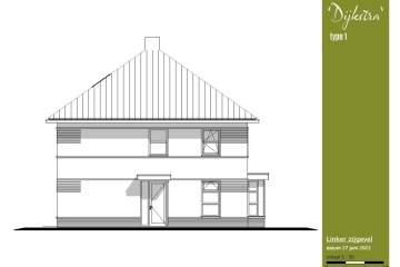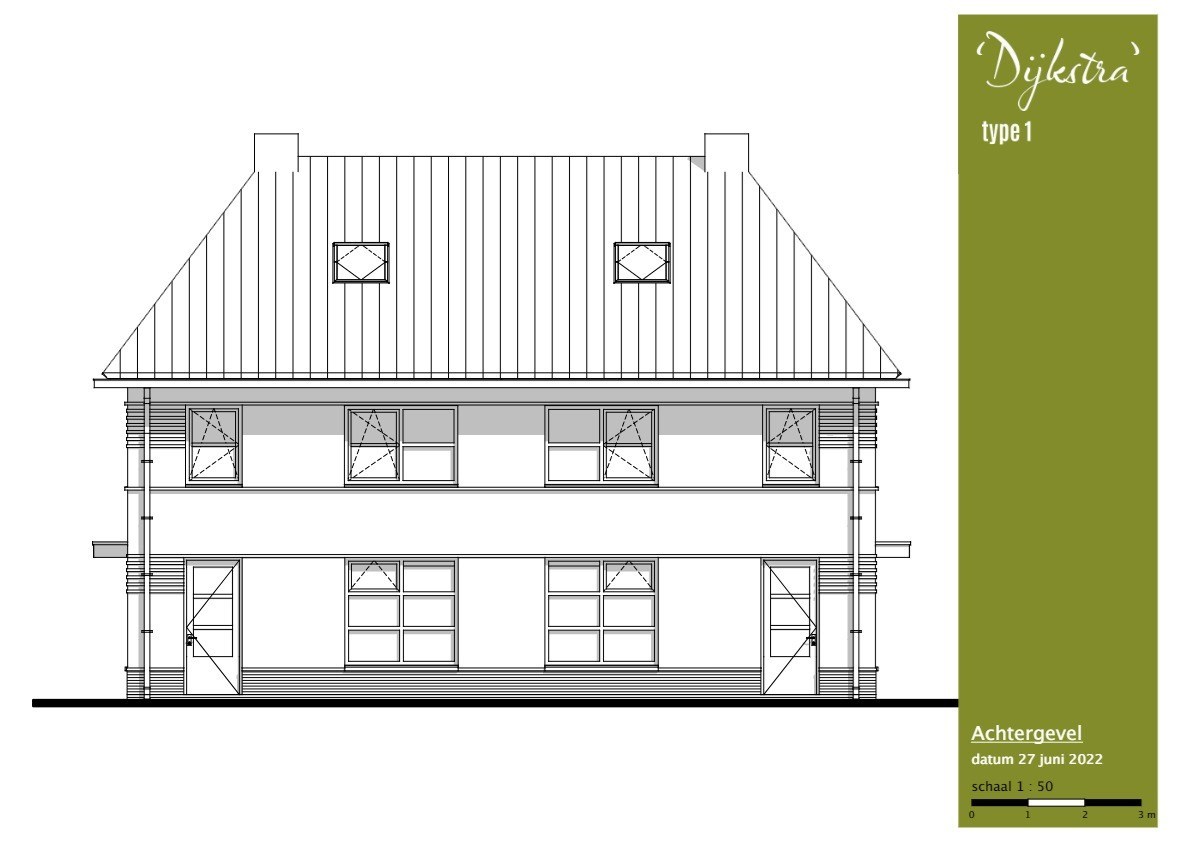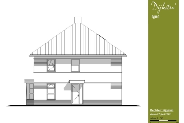 Deze ruime twee-onder-een-kapwoning met erker, schoorsteen en voordeurluifel, kenmerkt zich door een robuuste, eigentijdse uitstraling. De woningen bieden veel leefruimte, met drie slaapkamers en een badkamer op de eerste verdieping en de mogelijkheid om op de tweede verdieping een vierde slaapkamer te creëren. Het ontwerp is karakteristiek door de duidelijke horizontale lijnaccenten.