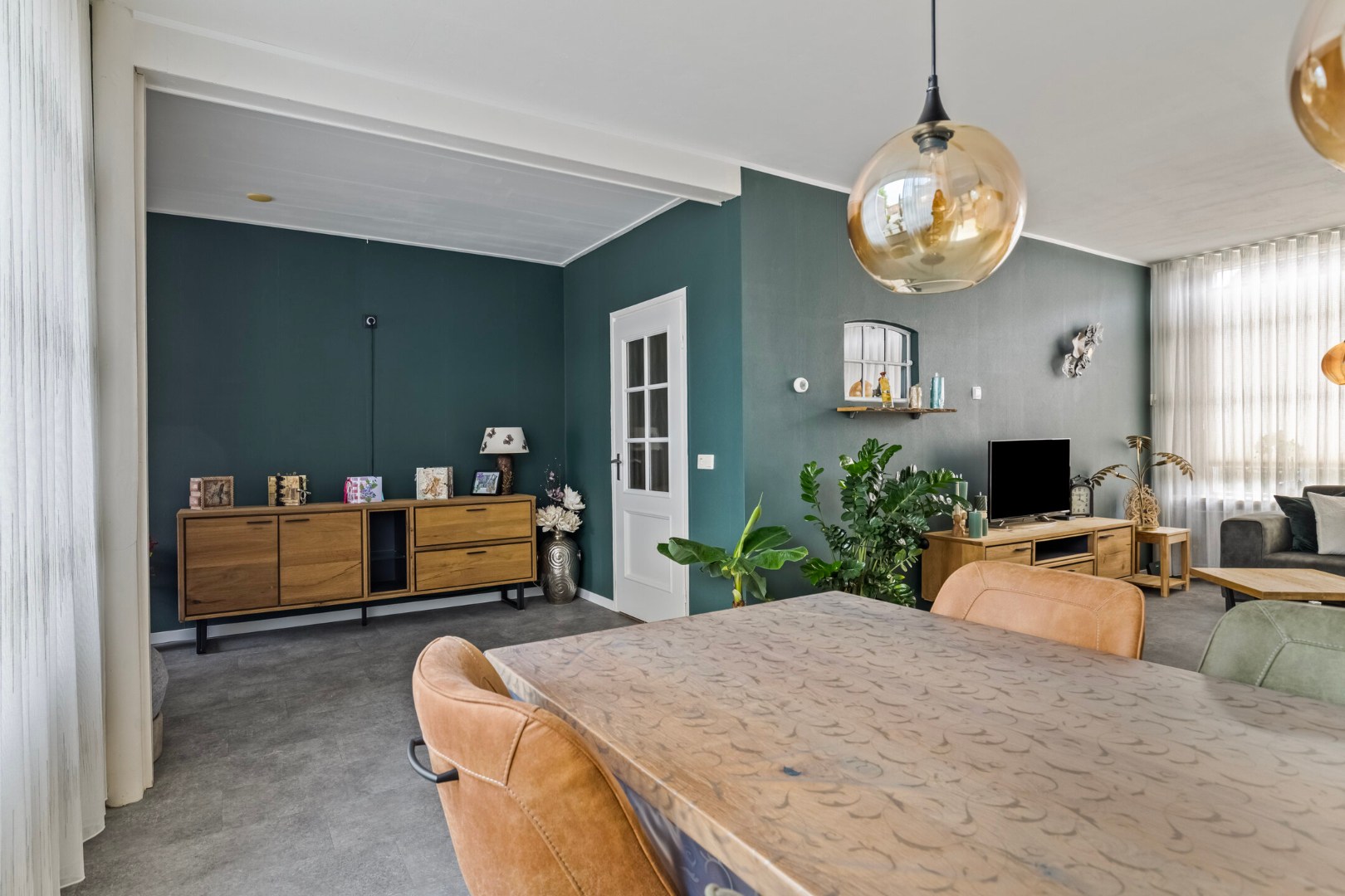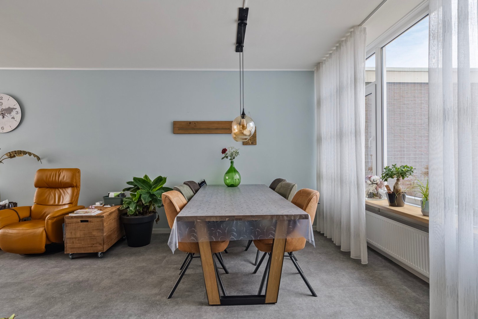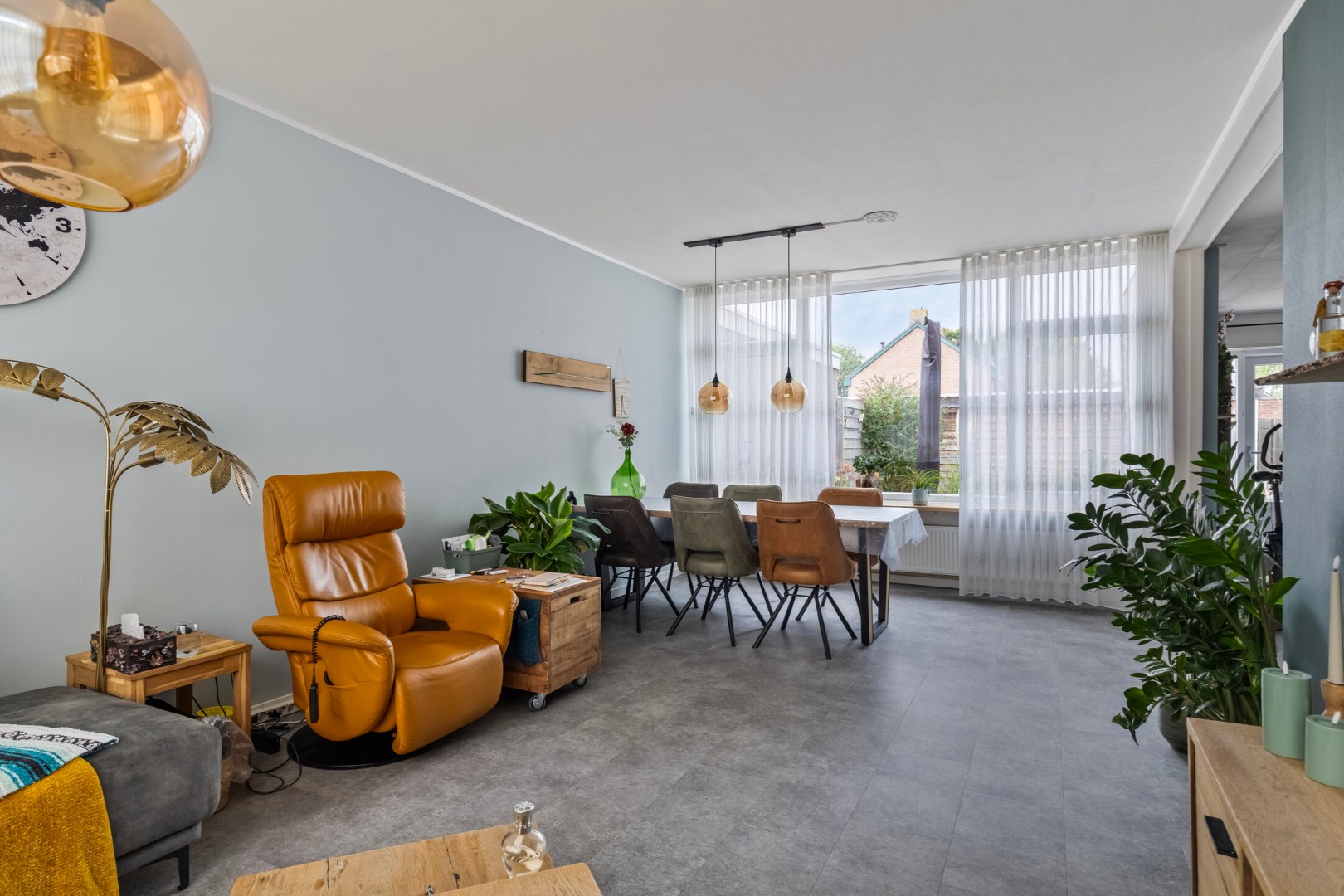 De ruime doorzonwoonkamer met eetgedeelte heeft veel lichtinval en een gezellige sfeer.