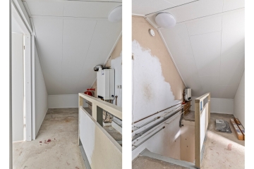 Overloop met cv-opstelling (Intergas, 2010), 4e slaapkamer ( 14 m2) in aanbouw met bergruimte achter de knieschotten.